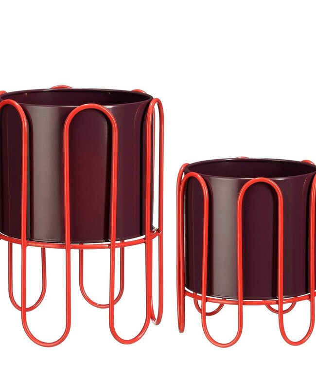 Met de Dione bloempotten op standaard van Mica Decorations geef je jouw planten een gedurfd podium! Zet ze bij elkaar als duo of verspreid ze door het huis om in verschillende ruimtes wat kleur toe te voegen. BeschrijvingGeef je planten een gedurfd podium met deze opvallende bloempotten op standaardHet materiaal maakt ze stevig Ideaal om variatie in hoogte en kleur toe te voegen aan verschillende ruimtesPerfect voor in de hal, slaapkamer of andere plekken binnenshuisTwee tinten rood – donkerrood en lichtrood – zorgen voor een speelse en opvallende uitstralingGemaakt van ijzer en met de afmetingen H35 x Ø25,5 cm en H25 x Ø23 cm Gewicht: 2240g kleuren: Paars