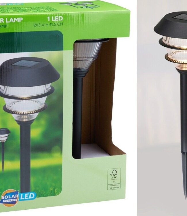 set van 4 solarlampen kunststof zwart 1x LED warm wit (2700-3000K) Ø13 x 41.5 (incl grondpen) 32 cm boven de grond aan-uit schakelaar Lees meer.