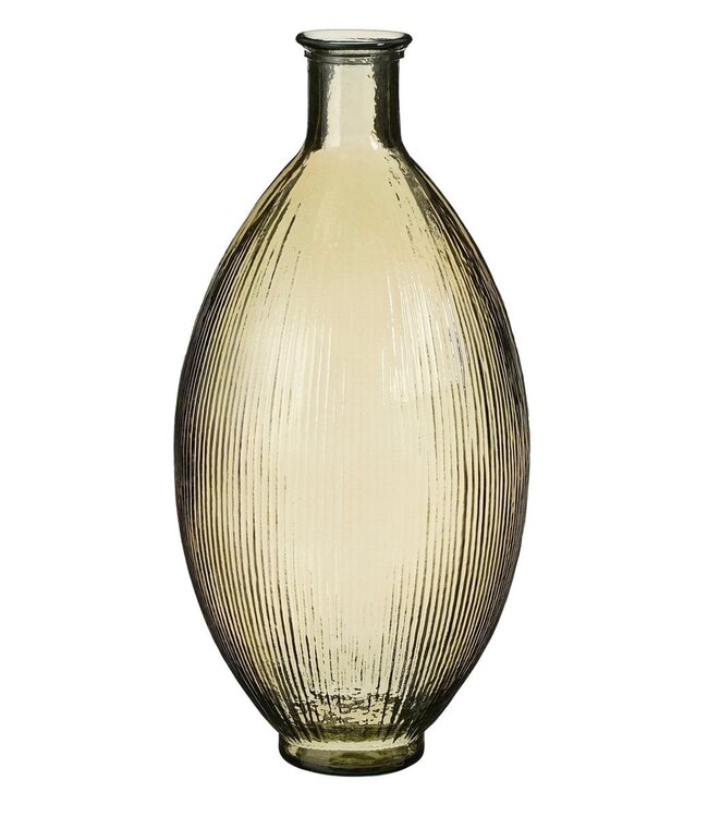 Met de Firenza flesvaas van Mica Decorations voeg je meer kleur toe aan je interieur. Het glas heeft namelijk een prachtige, lichtbruine kleur en is afgewerkt met een verticaal reliëf patroon. De fles vaas - afkomstig uit Spanje - is daarnaast gemaakt van 100% gerecycled glas en erg duurzaam. Dat maakt het gevoel bij dit item nog beter! Door de smalle opening is de vaas erg geschikt voor enkele pluimen, kunstbloemen of siertakken. Of zet hem gewoon zo neer! De Firenza flesvazen van Mica Decorations zijn verkrijgbaar in verschillende kleuren en maten. Deze lichtbruine vaas is 59 cm hoog en heeft een diameter van 29 cm. Ook stijlvol om te combineren met meerdere gekleurde vazen uit de Firenza collectie van Mica Decorations.
