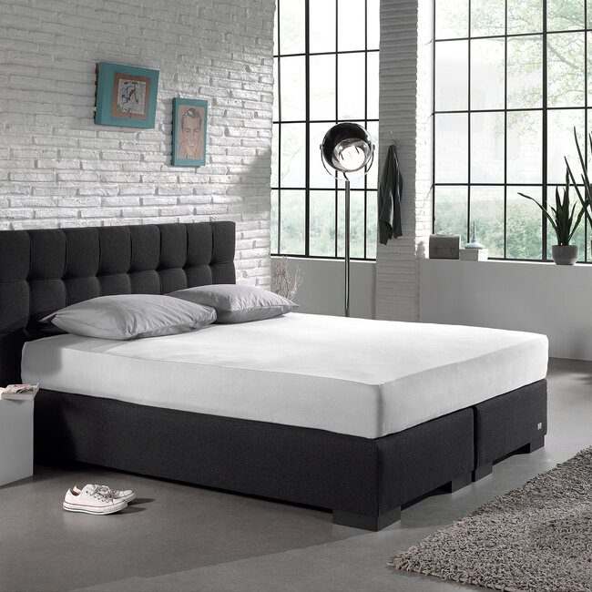 Dreamhouse enkel jersey hoeslaken van 100% gebreid katoen (135 GSM). Heerlijk zacht, ademend en elastisch: houdt warmte vast zonder benauwend te zijn. Voorzien van rondom elastiek voor een perfecte pasvorm en blijft keurig zitten op matrassen en boxsprings; hoekhoogte 30 cm (grootste maat 200x200/220: 40 cm). Kreukvrij, antiallergisch en wasbaar tot 60°C. Verkrijgbaar in meerdere kleuren en maten (80/90x200, 140x200, 160/180x200 en 200x200/220), ook geschikt voor waterbedden. De ideale, onderhoudsvriendelijke basis voor een comfortabel en verzorgd bed.