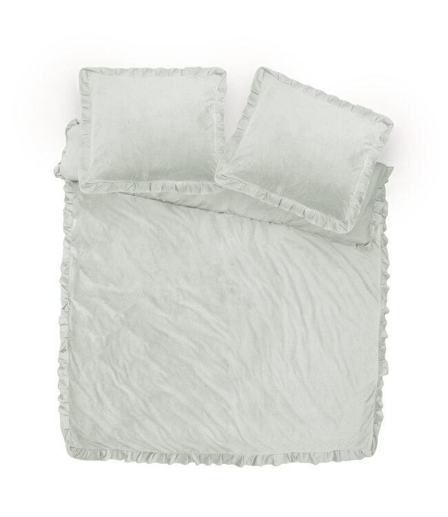 Sleeptime Velvet Ruffles dekbedovertrek: fluweelzacht en hotelchique. Het rijkelijk gerimpelde velvetdetail geeft uw slaapkamer direct luxe uitstraling. Gemaakt van duurzame velvet/microfiber (bovenkant 200 gsm), voelt warm en zacht en is antiallergisch. Inclusief kussenslopen met hotelsluiting. Voor dekbedden 200/220 cm; totale lengte 220 cm en een doorlopende instopstrook met drukknopen voor een nette afsluiting. BSCI- en Oeko‑Tex gecertificeerd, kreuk- en strijkvrij. Gemakkelijk in onderhoud: wasbaar op 40°C en geschikt voor de droger. Luxe verpakt — stijlvol comfort dat lang mooi blijft.