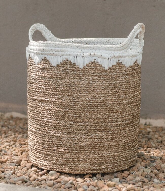 Grote wasmand ronde opbergmand plantenmand geweven van natuurlijke vezels NIAS wit (2 maten)