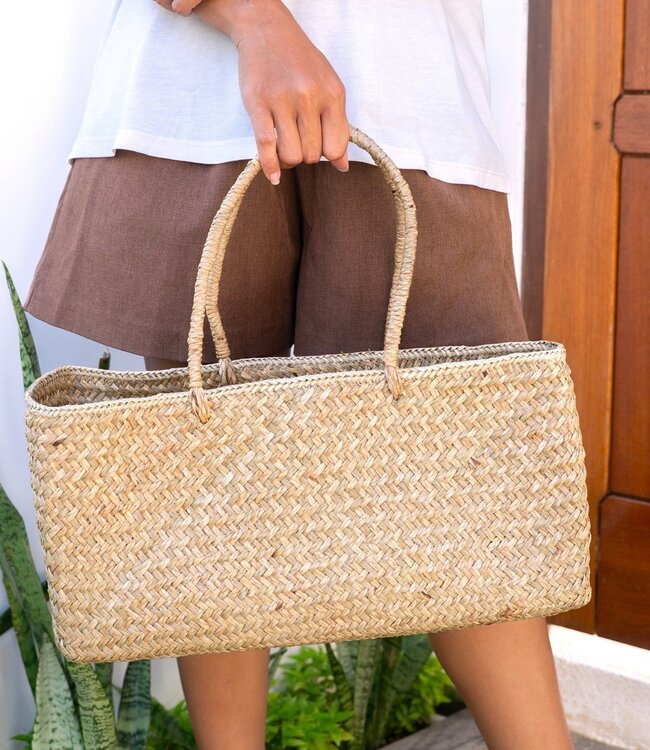 • Zomerklaar stijl: handgeweven van tropisch zeegras, dit tijdloze ontwerp brengt het hele jaar door moeiteloos zomerse vibes voor je look • Ruim en praktisch: een ruim interieur met veel ruimte voor al uw dagelijkse benodigdheden • veelzijdig: comfortabel om met de hand vast te houden of nonchalant over uw schouder te slingeren • Twee maten beschikbaar: kies de maat die perfect bij u past • Duurzame natuurlijke vezels: gebouwd om dagelijks gebruik te weerstaan ​​en tegelijkertijd zijn vorm en schoonheid te behouden • redelijk gemaakt: geproduceerd onder goede werkomstandigheden met eerlijke loon voor ambachtslieden • Heritage bewaren: vervaardigd met behulp van traditionele Indonesische weeftechnieken die door generaties worden doorgegeven • Bliksemsnelle verzending, de verpakking is plasticvrij