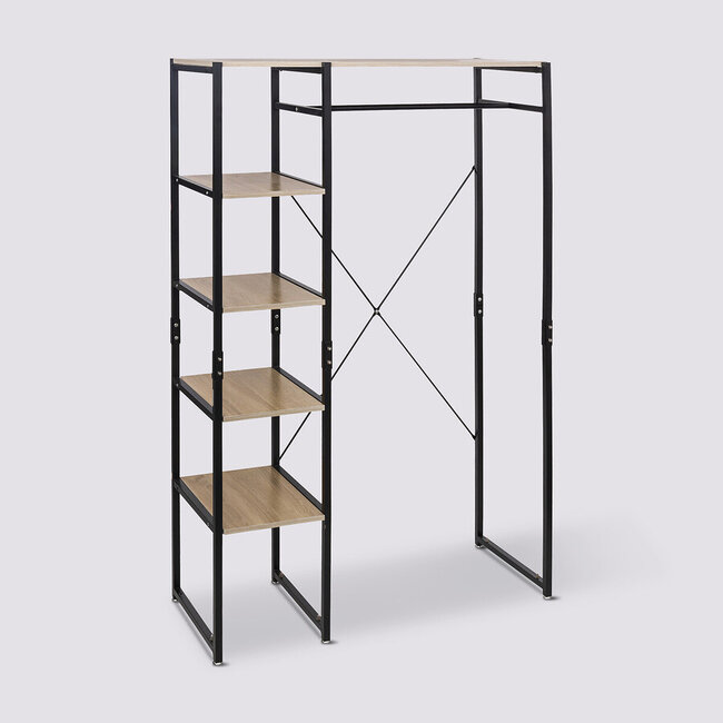 Door de multifunctionaliteit past de standaard perfect in huis, wachtkamer, kantoor of kleermakerij. De kledingkast heeft maar liefst 5 planken met een hanger, waardoor je er gemakkelijk schoenen, kleding, hoeden en tassen op kunt zetten. Lees meer.
