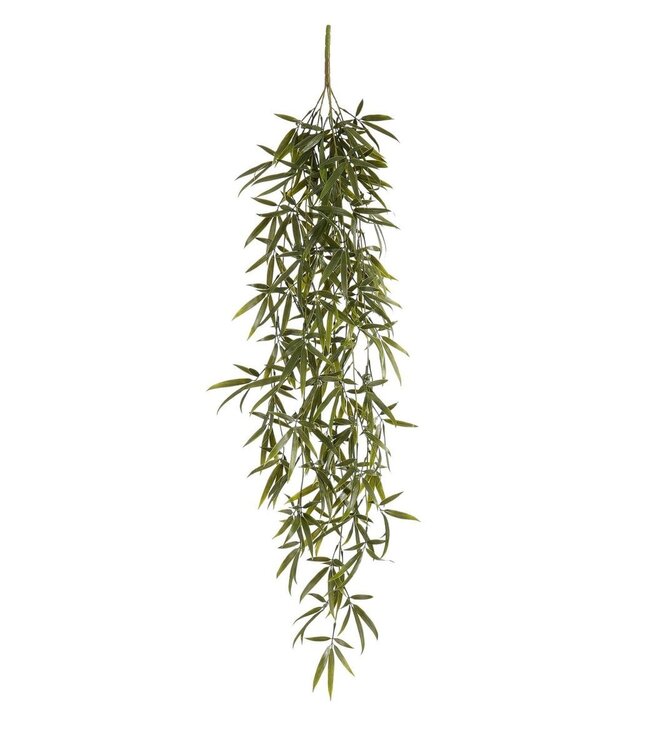 Klaar om zorgeloos te genieten? De kunstplanten van Mica Decorations zijn niet van echt te onderscheiden, maar hebben geen enkel onderhoud nodig. Deze Bamboe hangplant wordt gekenmerkt door zijn smalle, puntige bladeren en brengt direct een botanische sfeer in huis. BeschrijvingOnderhoudsvrij genieten van een weelderige groene uitstralingSmalle, puntige bladeren met subtiel kleurverloop voor een realistische lookEenvoudig te bevestigen met een stevige pinIdeaal voor op een kast of hangend aan het plafondPerfect te combineren met andere kunstplanten voor een botanische sfeerHeeft een lengte van 105 cm, een breedte van 35 cm en een hoogte van 3 cm Gewicht: 220g kleuren: Groen