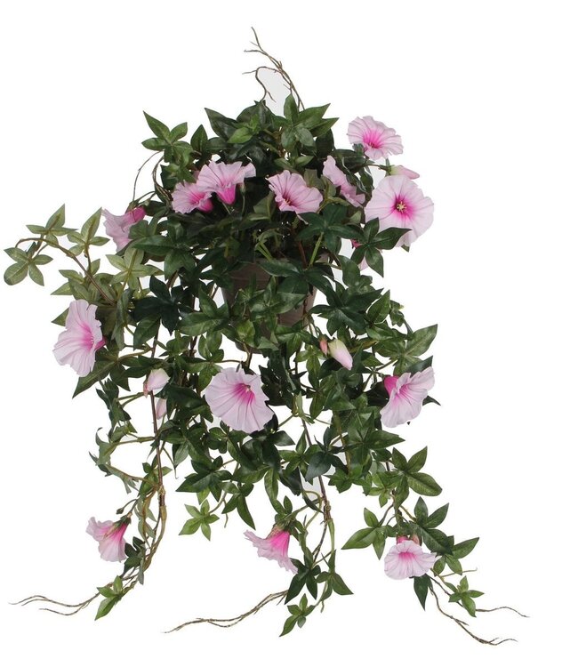 Petunia hangende kunstplant van L25 x B45 x H50 cmKunstplant met bloemen in roze kleurNet echte bloemen door de verschillende groeistadiaWordt geleverd in een terracotta bloempot met een diameter van 11,5 cmVergt geen enkel onderhoud!