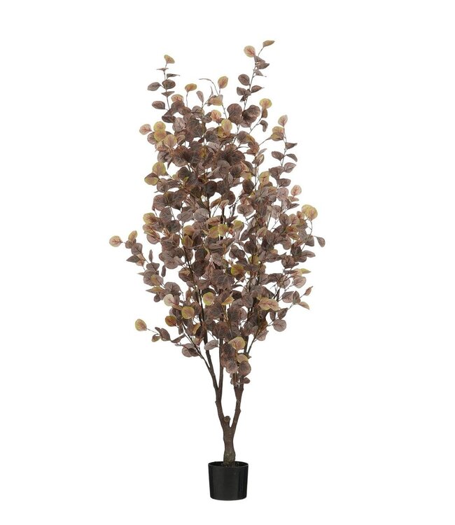 Breng de warme sfeer van de herfst in huis met deze prachtige Eucalyptus kunstplant van Mica Decorations. De bronskleurige bladeren geven de plant een natuurlijke, seizoensgebonden uitstraling en zorgen voor een stijlvol accent in elk interieur. De eucalyptus staat stevig in een zwarte basispot met een hoogte van 12,5 cm en een diameter van 15 cm. De totale hoogte van de plant is 180 cm en de diameter is circa 80 cm, wat hem perfect maakt voor een leeg hoekje of als blikvanger naast een kast of bank. Ideaal voor wie sfeer wil creëren zonder onderhoud! Gewicht: 3000g kleuren: Bruin