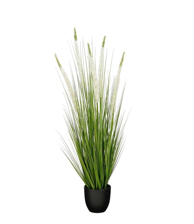 Haal een frisse, natuurlijke uitstraling in huis met dit Eremurus kunstgras in pot van Mica Decorations. Het kunstgras heeft lange, slanke groene sprieten en sierlijke bloeiaren met een subtiele witte tint, wat zorgt voor een speels en realistisch effect.