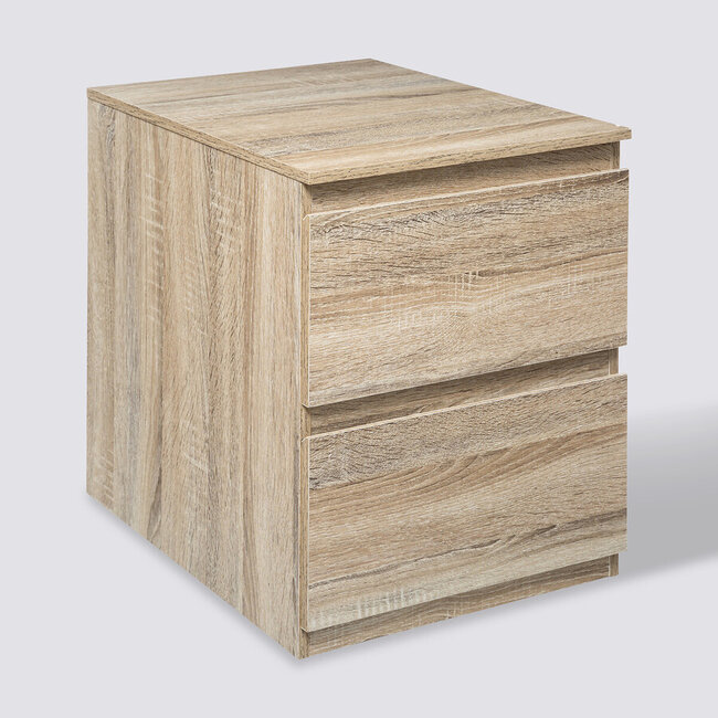 Dit naturelkleurige nachtkastje met 2 lades is een elegante en praktische musthave. De 2 lades die op sleden zijn gemonteerd, bieden je veel opbergruimte naast je bed. Een zelfmontage. Lees meer.