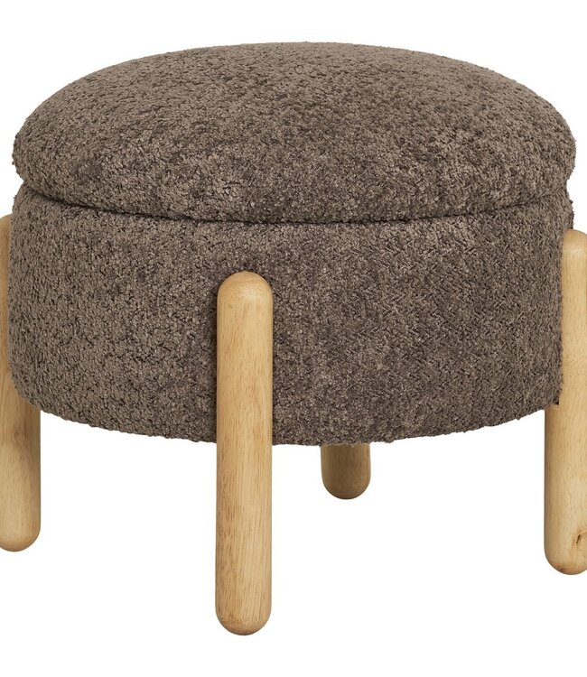 Poef met opberger, bouclé, bruin/natuur, HN1237