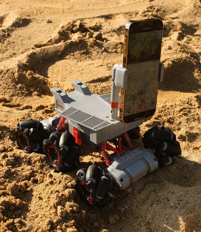 Beleef zelf de spannende missie van NASA naar Mars met ons op afstand bestuurbare model van de "Opportunity" Mars Rover. Plaats je smartphone in de houder en neem je eigen verkenningsmissies op. Dankzij het innovatieve wielontwerp van de rover kan hij vooruit, achteruit en zelfs zijwaarts bewegen.