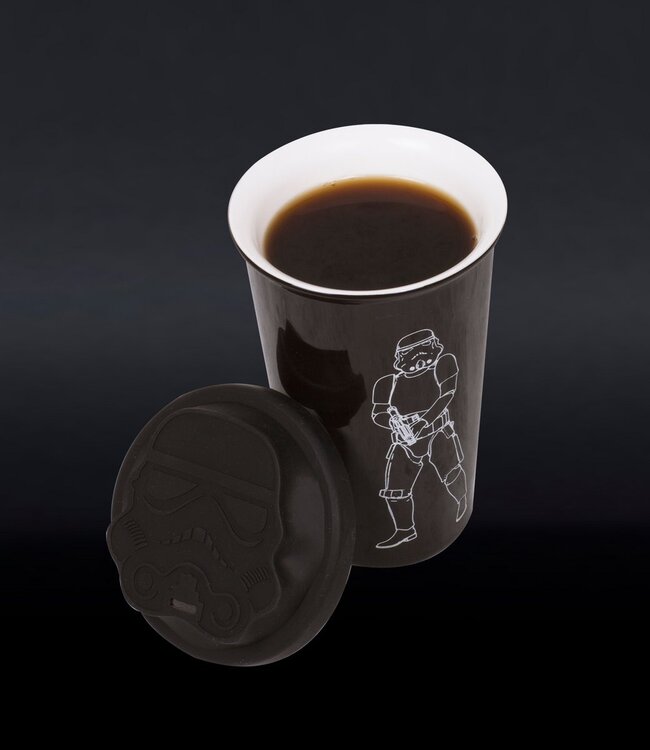 Koffie om mee te nemen! Of je nu laat op je werk komt of een wandeling maakt op een koude winterdag, de Original Stormtrooper mok houdt je warm op die sombere dagen. Vul de drinkbeker met je favoriete warme drank en neem hem overal mee naartoe. De dubbelwandige keramische mok zorgt ervoor dat je drankje zo lang mogelijk warm blijft. De siliconen deksel in de vorm van een 3D Stormtrooper sluit de beker perfect af zodat er niets kan lekken.