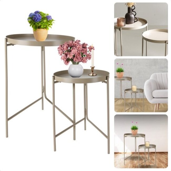Voeg een subtiele en moderne flair toe aan je interieur met deze set van 2 taupe bijzettafels. De tafels hebben een elegant metalen frame en een zachte taupe kleur die perfect in elk interieur past. Lees meer.