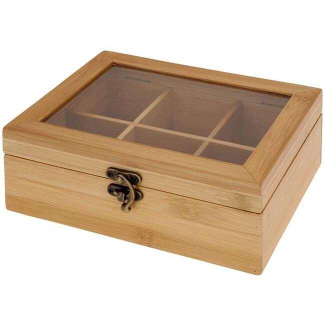 Voor het overzichtelijk opbergen van 72 verschillende theezakjes Deksel is voorzien van een transparant raam en een sierslot aan de zijkant Afmeting kist: 21x16xH7.5cm Gemaakt van milieuvriendel... Lees meer.