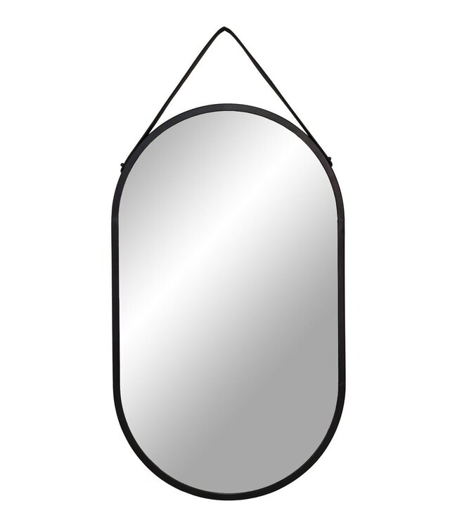 Deze Trapani Spiegel heeft een strak en modern ontwerp met een zwart stalen frame en een kunstleren ophangriem. De langwerpige ovale vorm voegt een vleugje eigentijdse stijl toe aan elke kamer.