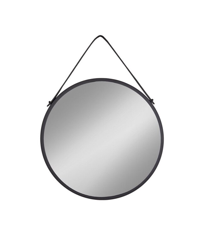 Trapani Spiegel - Zwart, Staal, Kunstleer, Ø38cm
