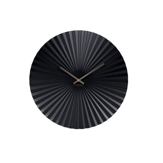De vorm doet denken aan een Japanse waaier, maar het is beslist een wandklok. Wandklok Sensu is een uniek item uit de Karlsson collectie. Het bijzondere reliëf maakt indruk en deze klok mist cijfers. Het ontwerp van de Karlsson Sensu wandklok is puur en modern. Het subtiel glanzende oppervlak en de zeer slanke wijzers werken prachtig samen. Een verfijnd en chique ontwerp van Karlsson! Junglegroen en vervaagd roze zijn toegevoegd aan de najaarscollectie van 2021. Diameter van 40 cm. Geleverd zonder 1 AA-batterij. Breedte: 40cm Hoogte: 40cm Diameter: 40cm Gewicht: 55g kleuren: Zwart, Zwart