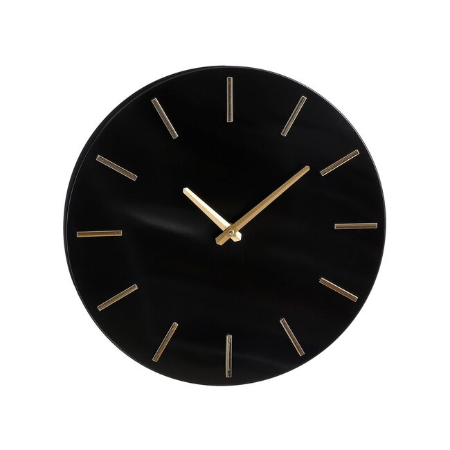 De Brixen wandklok combineert stijl en functionaliteit. Gemaakt van duurzaam aluminium met een ronde vorm van Ø35,5 cm, met een zwarte achtergrond die prachtig contrasteert met de gouden wijzers. Het strakke en moderne design past in vrijwel elk interieur en voegt een chique touch toe aan je muur. Dankzij het handige ophangsysteem is de klok eenvoudig te monteren. Let op: door het interne mechanisme tikt de klok en is hij niet stil.
