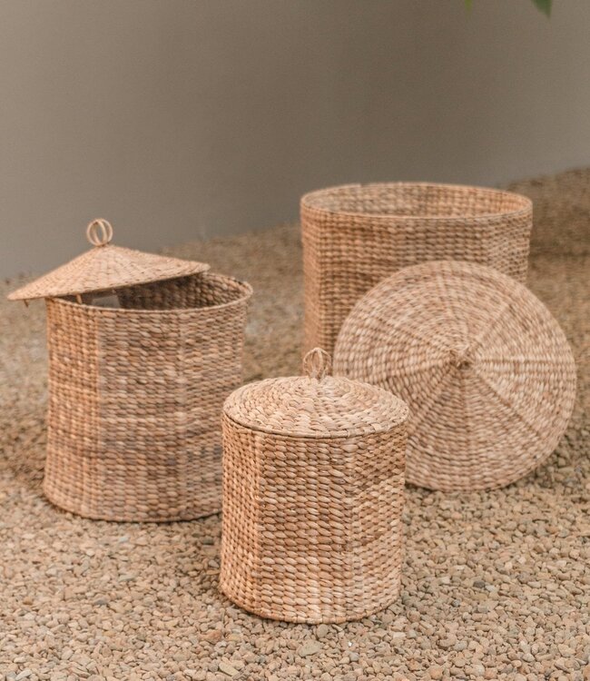 Wasmand met deksel GARUT van waterhyacint (3 maten)