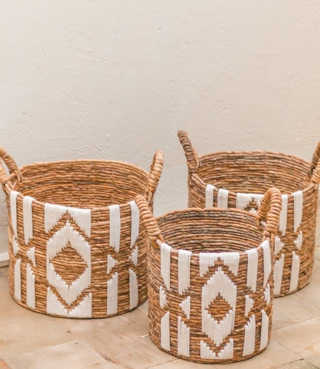 Wasmand Plantenmand Grote opbergmand rond NASARI gemaakt van bananenvezel met een macramé-patroon van katoen