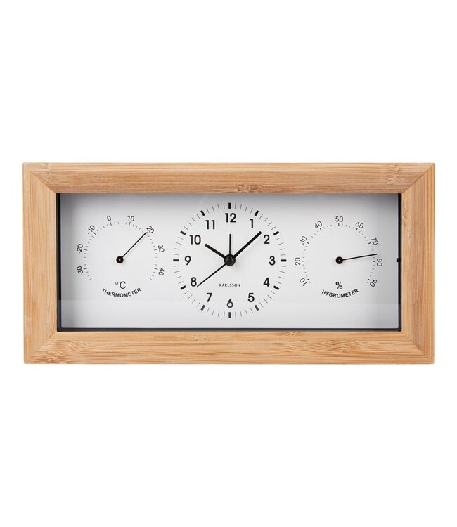 Met de Neat bamboe wekker van Karlsson haal je de perfecte combinatie tussen modern en natuurlijk in huis. Het stevige, rechthoekige frame is gemaakt van bamboe en heeft een minimalistische, tijdloze wijzerplaat. De Neat bamboe wekker van Karlsson leent zich uitstekend om bovenop de boeken op je nachtkastje te plaatsen of als pronkstuk in je thuiskantoor. Breedte: 26cm Hoogte: 13cm Lengte: 26cm Gewicht: 49g kleuren: Wit